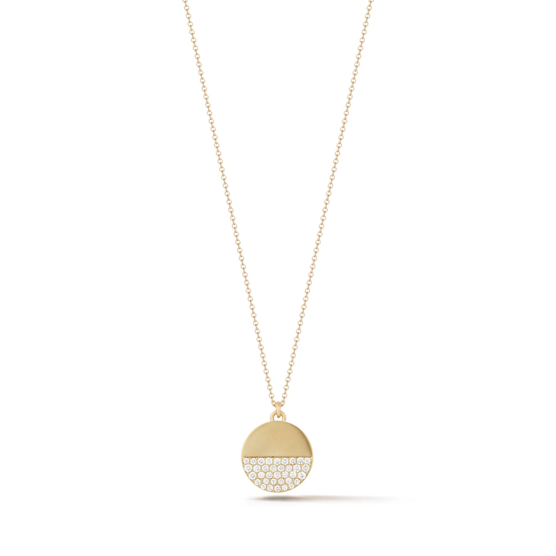 Alluring and striking, the pendant shimmers with geometric opulence in 18k rose and yellow gold with pave diamonds.