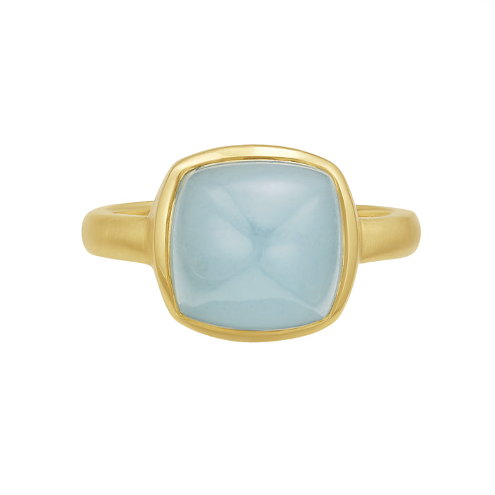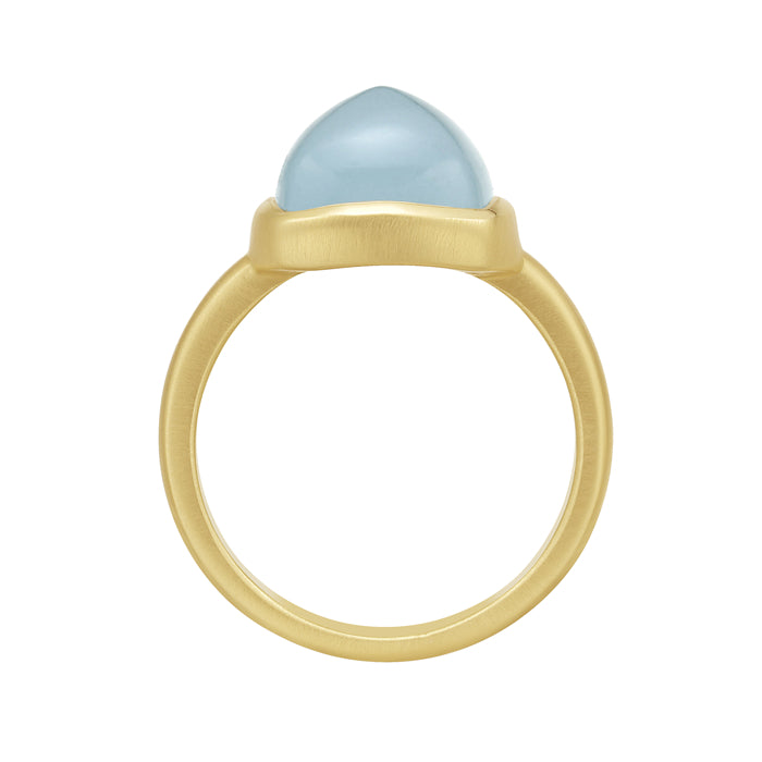 The Milky Aquamarine in Sugarloaf form, as we like to call it, is truly captivating as it encircles the finger showcasing a standout Aquamarine that is soft to the touch.